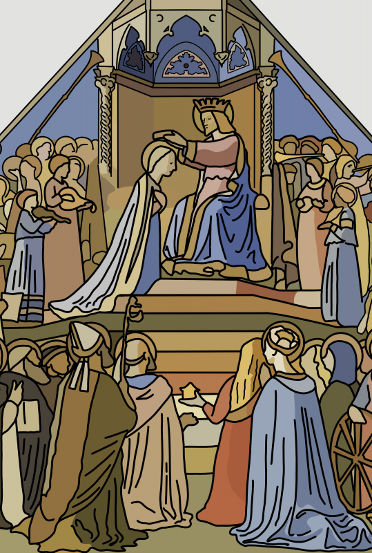 Leave the Uccello battle scene behind you and cross to the opposite wall. On your left, close to the door to the Galerie d'Apollon, is a single painting: the “Coronation of the Virgin” by Fra Angelico.