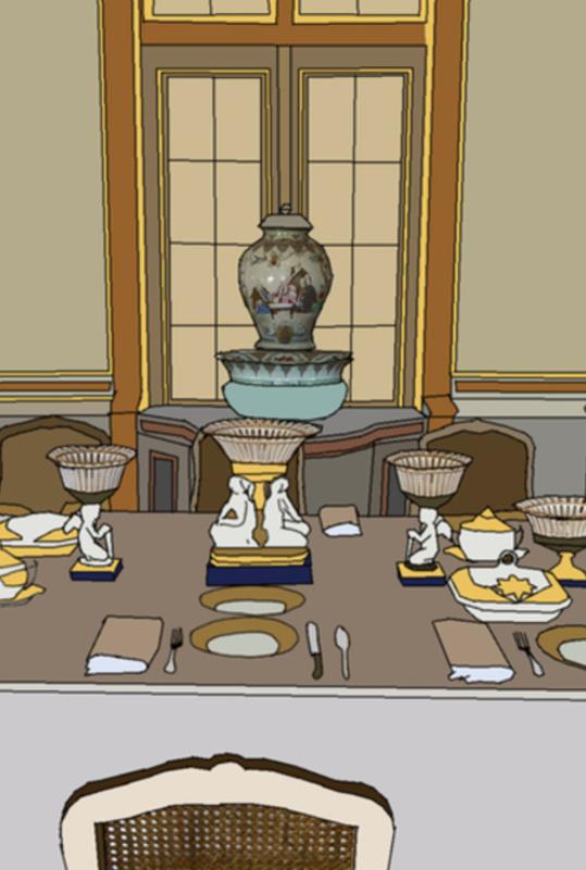 From the Smoking Room, carry on straight ahead. You’ll make your way through the Coffee Room and then you’ll reach the Dining Room. When you get there, stop for a moment to take a closer look at the table in the middle of the room and listen to our stories about the new royal habits.