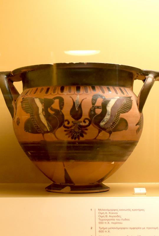 On your right hand and across the previous exhibit, you will see a black-figure column krater on a shelf.