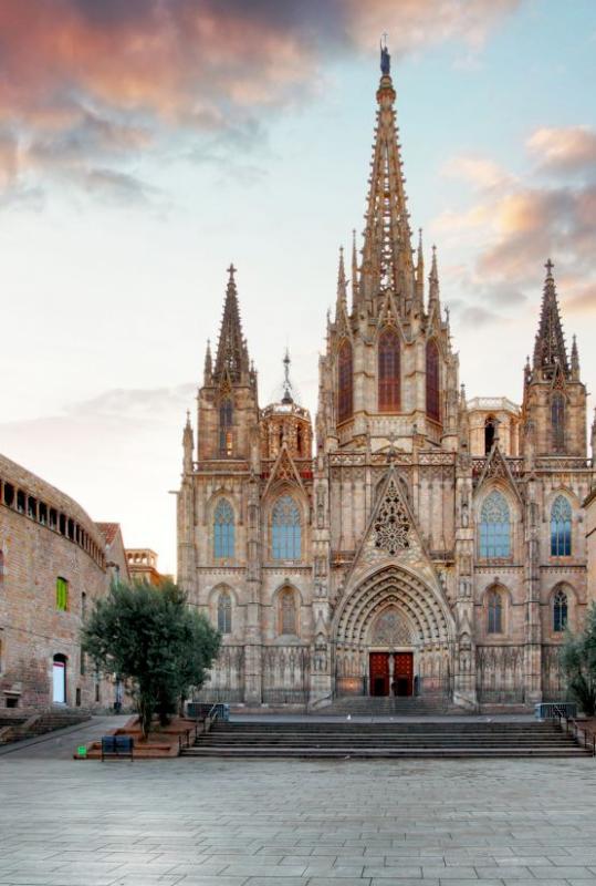 La Sagrada Família may be the most famous temple in Barcelona, but the Cathedral is the most important. Officially named the Cathedral of the Holy Cross and Saint Eulàlia, it serves as the seat of the Archbishop of Barcelona. That’s why it is also referred to as “La Seu,” meaning “the seat.” Built atop the remains of a 4th-century paleo-Christian basilica and the Romanesque church that followed, the current structure dates back to the late 13th century. It features three naves, a choir, a number of chapels, and a cloister. It also features a crypt—but we’ll get to that later. For now, take a moment to observe the exterior. Can you identify its architectural style?