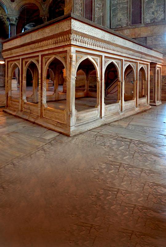Right next to the omphalion, you can see a balcony made of marble which is the muezzin’s seat. Listen to the story of the 9th point of interest.