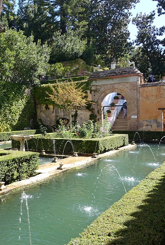 From the roofed gallery at the end of the patio, take the stairs on the right to access the Court of the Sultana ́s Cypress Tree.